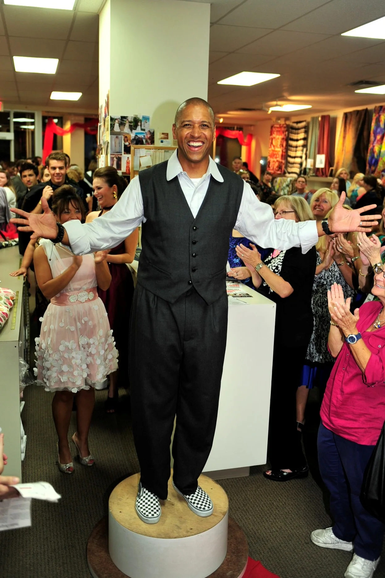 Men’s slacks and vest made out of a lightweight wool, vest lined in dupioni silk.